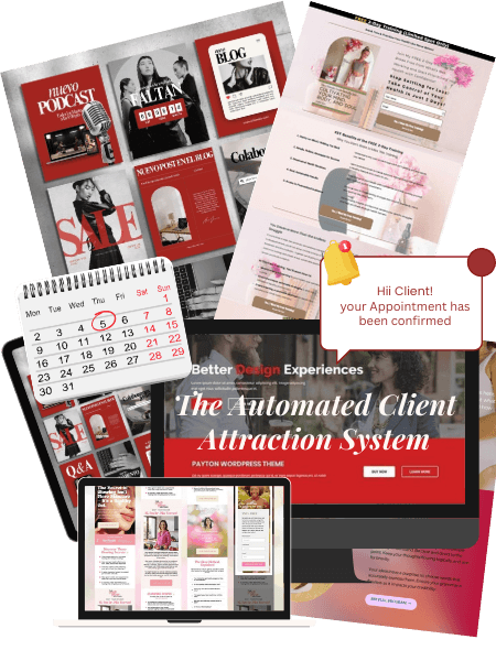 A ready-to-launch client attraction system that simplifies how you get discovered, builds stronger client relationships, and helps you stay fully booked with ease.”