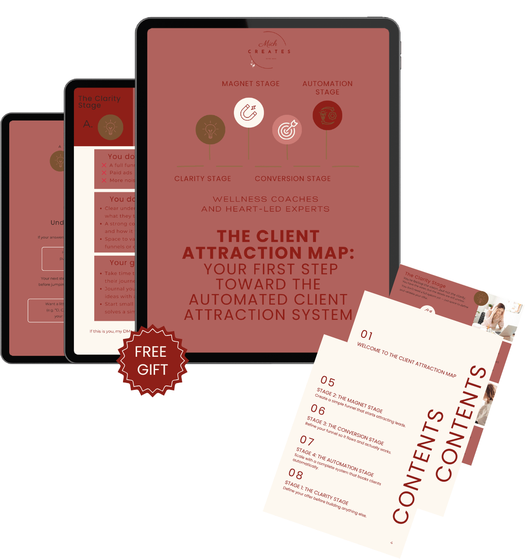 The FREE Client Attraction Map shows you which stage you’re in — Clarity, Magnet, Conversion, or Automation.